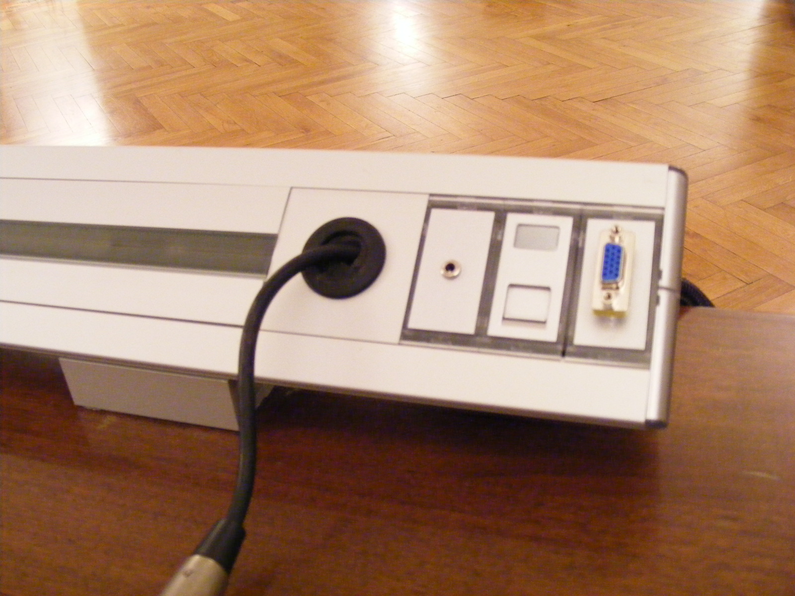 In questa soluzione, il nostro profilo fornisce distribuzione di corrente elettrica, connettori di rete dati e VGA per videoproiettori e impianto microfonico.