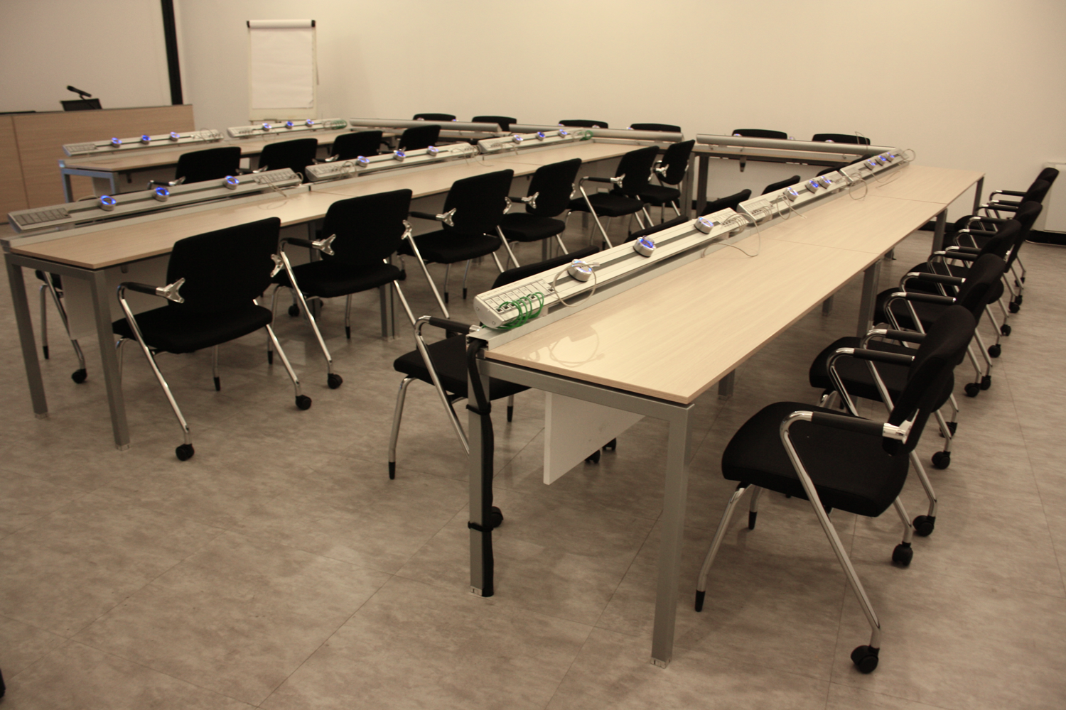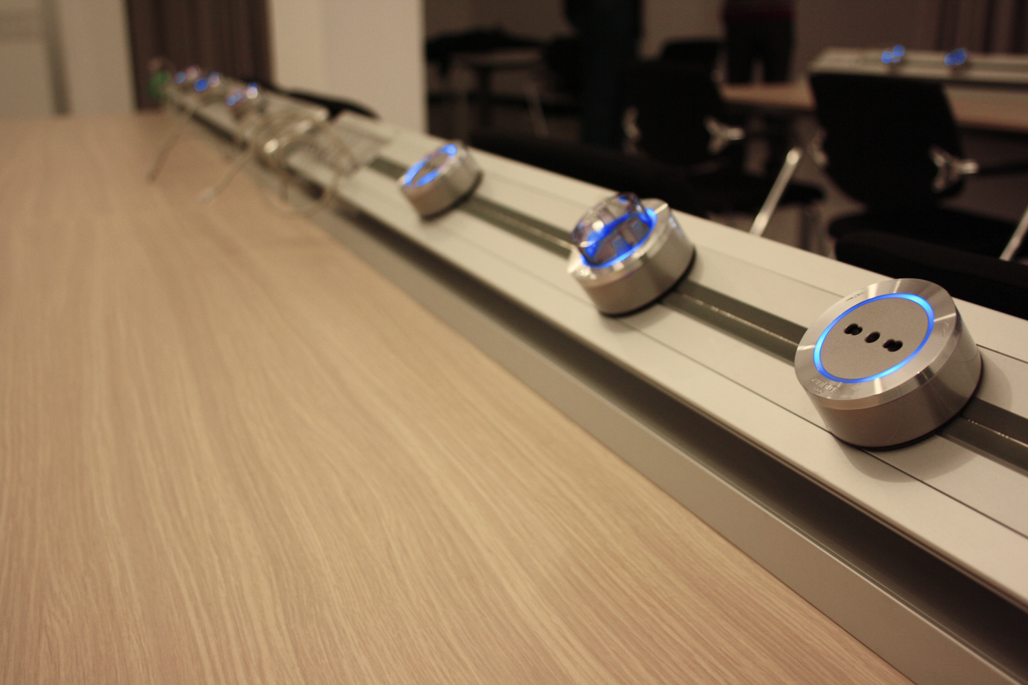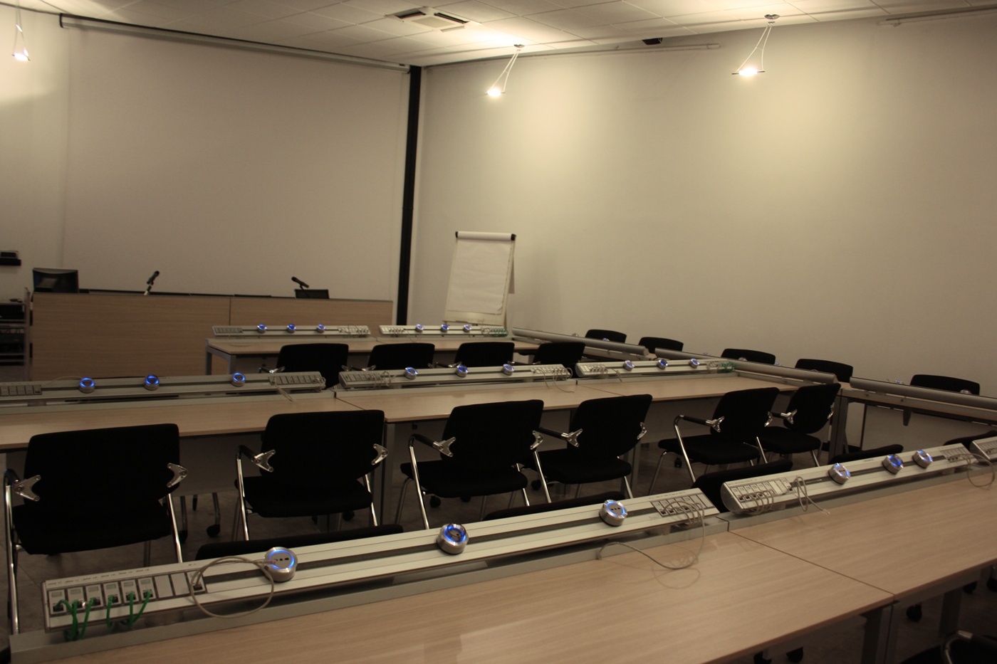 Eubiq Europe ha realizzato per CNH Industrial una sala meeting completamente elettrificata. In particolare sono stati applicati dei profili elettrificati a scrivania lungo tutti i tavoli della sala. Questa soluzione permette ai partecipanti del congresso di poter sempre usufruire dell’alimentazione elettrica per collegare le utenze personali, ma può anche essere perfetta per gli organizzatori della riunione i quali possono collegare video proiettori o computer per esporre l’eventuale relazione.